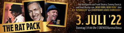 Frank Sinatra, Dean Martin und Sammy Davis jr. sind zurück! Das legendäre Rat Pack, das in den Jahren 1959 bis 1966 Nacht für Nacht im Sands Hotel in Las Vegas sein Publikum begeistert hat, betritt am Sonntag, 3. Juli 2022 um 17.00 Uhr mit großem Orchester erneut die Bühne. Henrik Wager, Alvin Le-Bass und Nigel Casey singen und performen die Hits der beliebten und unvergessenen Showgrößen.